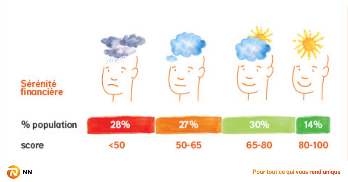 Vous voulez savoir où vous vous situez en termes de sérénité financière ? Faites le test sur https://www.nn.be/fr/serenite-financiere. Vous y trouverez également de nombreux conseils pratiques.